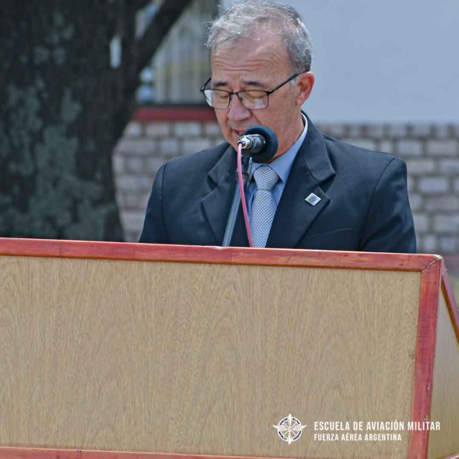 Además, en sus palabras destacó el accionar de los instructores del Grupo Aéreo que se convirtieron en héroes al dar su vida durante el conflicto del Atlántico Sur, Capitán Omar Jesús Castillo, Capitán Danilo Rubén Bolzán y Primer Teniente Jorge Rubén Ibarlucea.