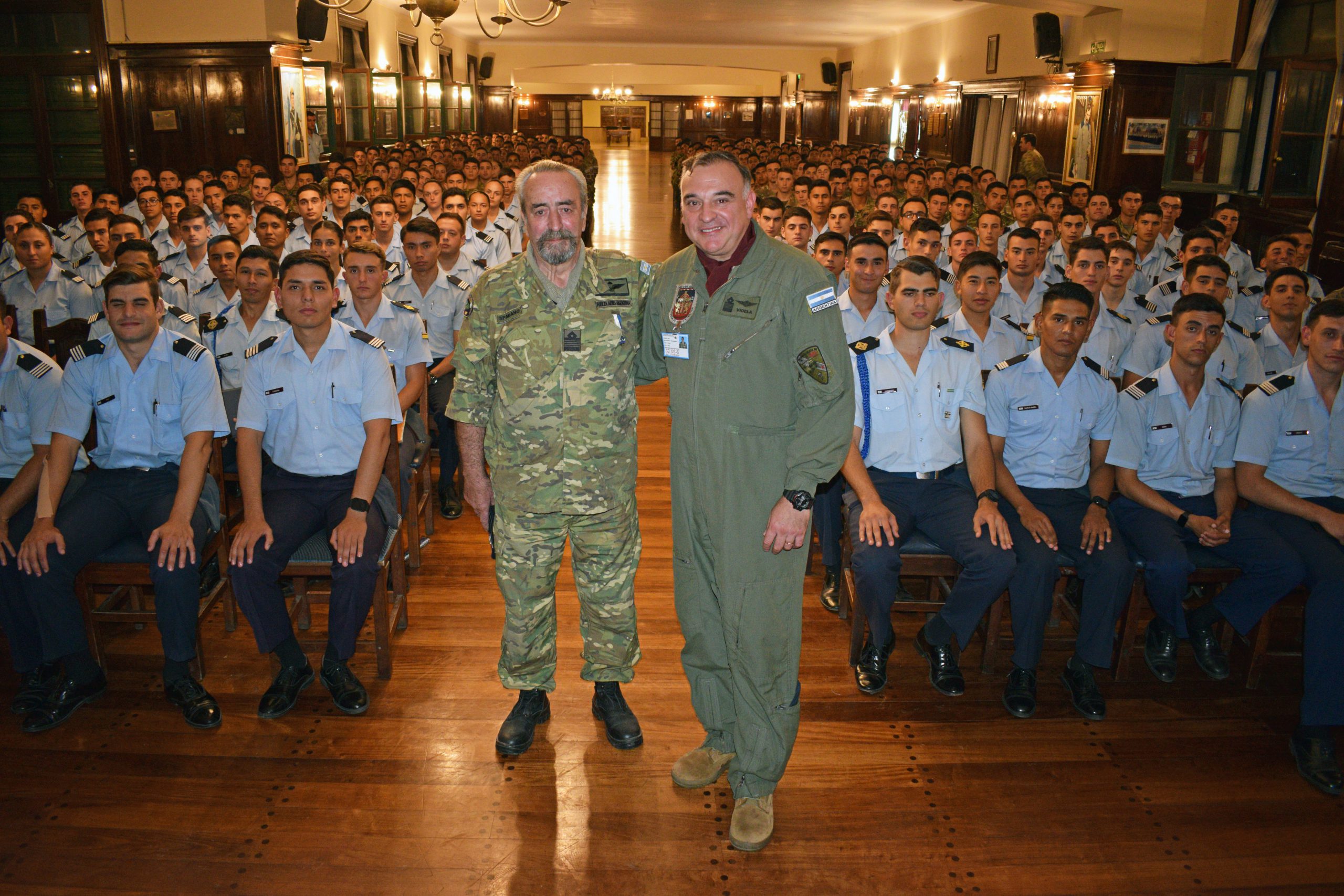 Luego de las actividades diarias, los cadetes fueron los privilegiados en vivenciar la conferencia realizada por “Gallo” (indicativo del Señor Comodoro), en la cual habló de múltiples temas, incluyendo su niñez, su paso por la Escuela de Aviación Militar como cadete, su formación siendo ya Oficial de la Fuerza Aérea, su participación dentro del Conflicto del Atlántico Sur, y, además, las diferentes actividades que realizó dentro de la institución luego del conflicto.