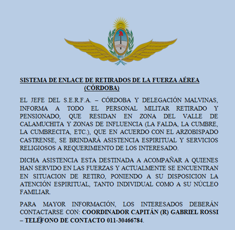 Asistencia Espiritual (Zona del Valle de Calamuchita)