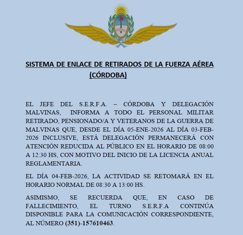 Atención al Público durante la Licencia Anual Reglamentaria.