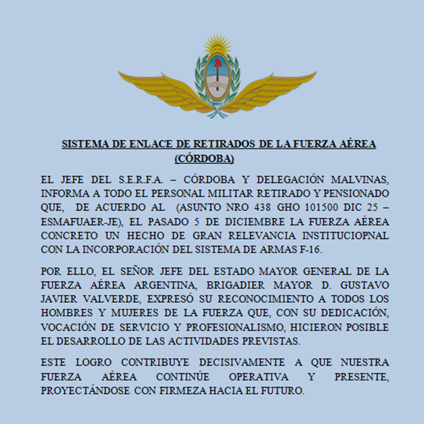 Se informa el fallecimiento del S.M (R) Ernesto VIDELA